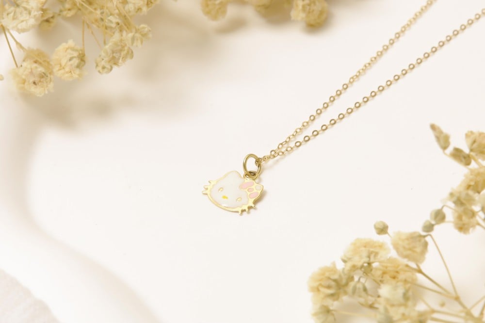 سلسال كيتي بوزنه 1.220 غرام وعياره 18 قيراط، ينبض بالحيوية والمرح، مثالي لإضافة لمسة ناعمة ومرحة لإطلالتك.